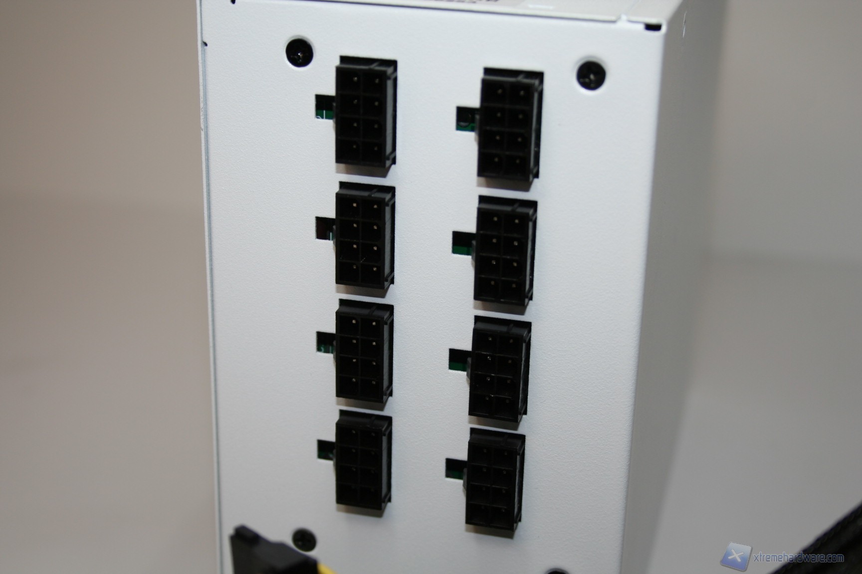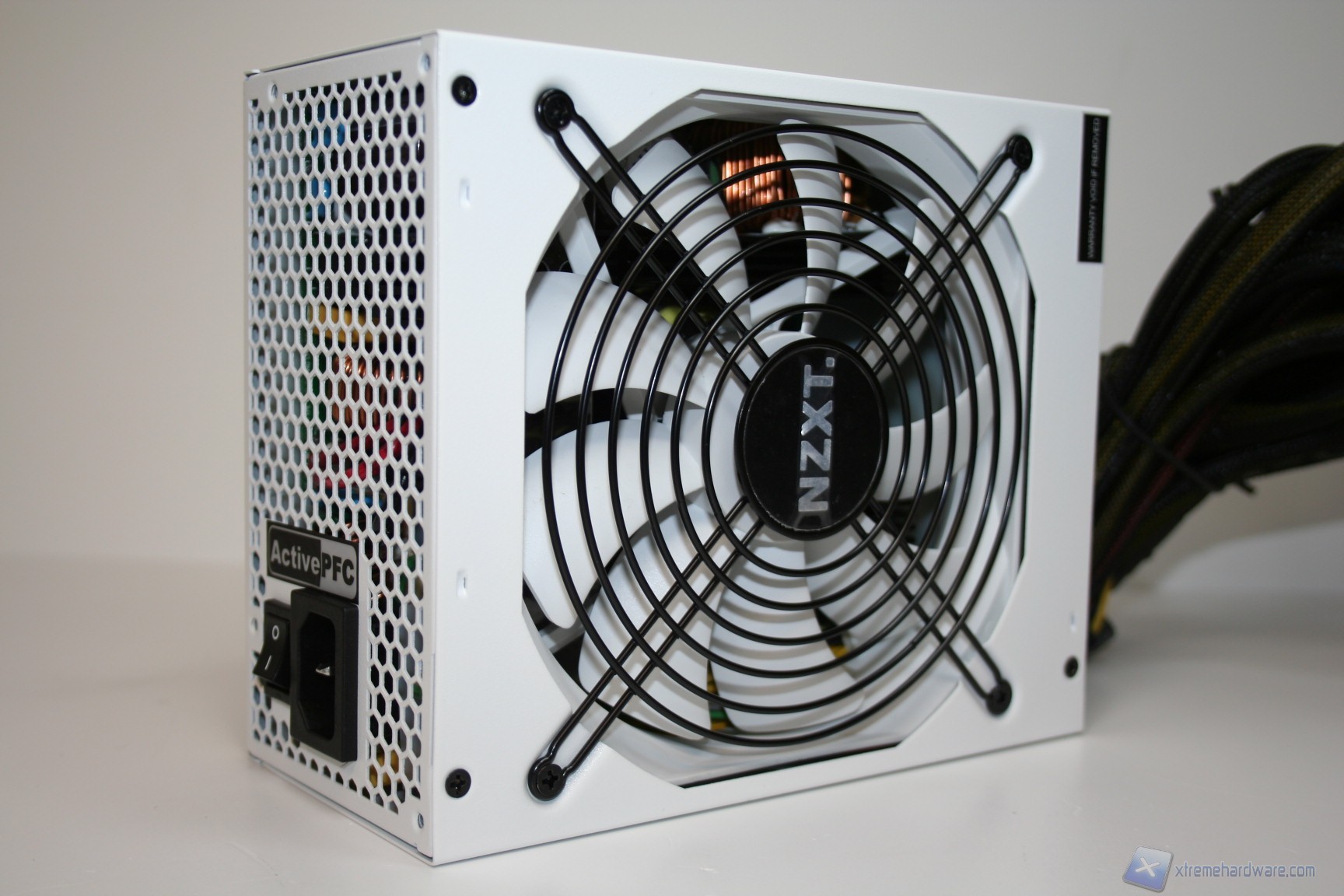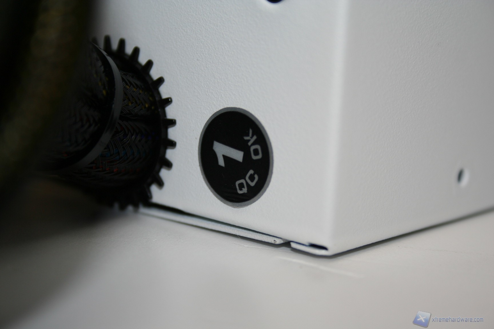 Il design esterno a prima vista sembra essere classico, ma robusto e dal layout ordinato. Il colore bianco si abbina perfettamente ai cabinet e alle ventole NZXT, che nelle versioni più di tendenza sfoggiano la stessa colorazione. Nella parte posteriore sono presenti le classiche forature di ventilazione a nido d’ape. Non ci sono feritoie di aerazione addizionali, probabilmente per via dell’utilizzo della topologia ibrida LLC resonant che ha permesso di migliorare le temperature delle componenti interne, data l’alta efficienza. Nella parte superiore è presente la griglia di protezione per la ventola NZXT da 140mm, fissata con quattro viti a croce; questa struttura è removibile dall’esterno, per facilitare eventualmente la pulizia. La verniciatura è davvero molto buona e sono presenti diversi adesivi laterali che ne descrivono il seriale e le specifiche tecniche; questa soluzione è classica e viene adottata dalla stragrande maggioranza dei produttori. Nella parte posteriore è presente un adesivo che denota il superamento del test Hi-Pot Test, per il corretto scarico a terra dell’unità. Particolare interessante è la finitura della giunzione tra chassis e cavi non modulari, realizzata con una plastica rigida sfalsata, assieme ad una fascetta di cablaggio per conferire rigidità a questa porzione. Sempre nella parte posteriore sono presenti i connettori modulari, tutti da 6 PIN, che permettono l’inserimento di una qualsiasi tipologia di cavi in dotazione, senza un ordine particolare. Sebbene rappresenti una novità, e sebbene possa facilitare l’assemblaggio, per motivi di comprensione, ed aderenza agli standard, siamo dell’idea che sia più utile una suddivisione, eventualmente anche per ovviare a problemi di cavi malfunzionanti. E’ presente ovviamente l’adesivo per la garanzia, che è necessario rompere per procedere allo smontaggio dell’unità.