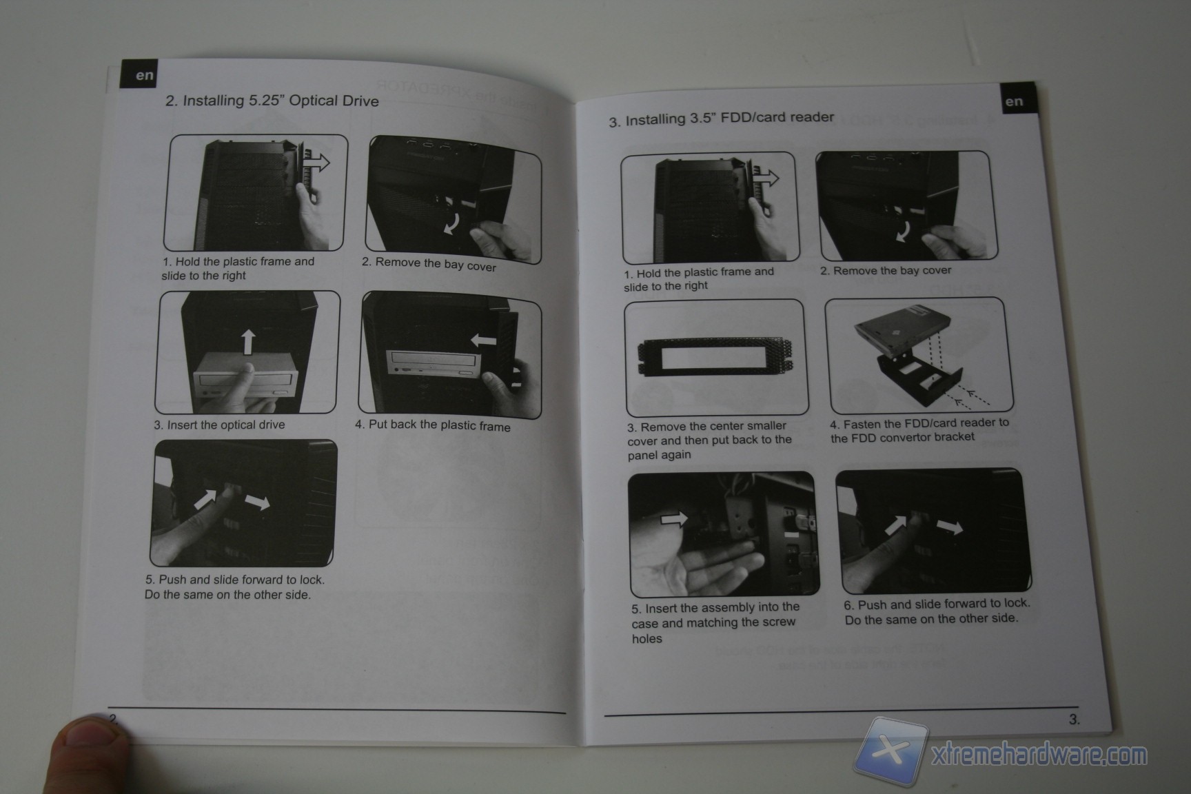 Fatto questo consigliamo l’installazione dei dischi rigidi, facendo attenzione a posizionarli in serie nel cage predisposto a scorrimento e facendo attenzione a posizionarli intervallati da uno slot, per favorirne la ventilazione ed il flusso d’aria verso le VGA. Fatto questo sarà necessario montare il lettore CD: dovrete togliere le mascherine frontali, facendo scorrere l’apposito meccanismo che potete osservare nella seguente fotografia: